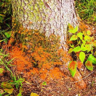 - Мелкие опилки вокруг ствола дерева. Из-за того, что короеды имеют грызущий ротовой аппарат и прогрызают мельчайшие отверстия в дереве, после из трапезы вокруг растения появляется множество опилок, что также говорит о наличии паразитов.